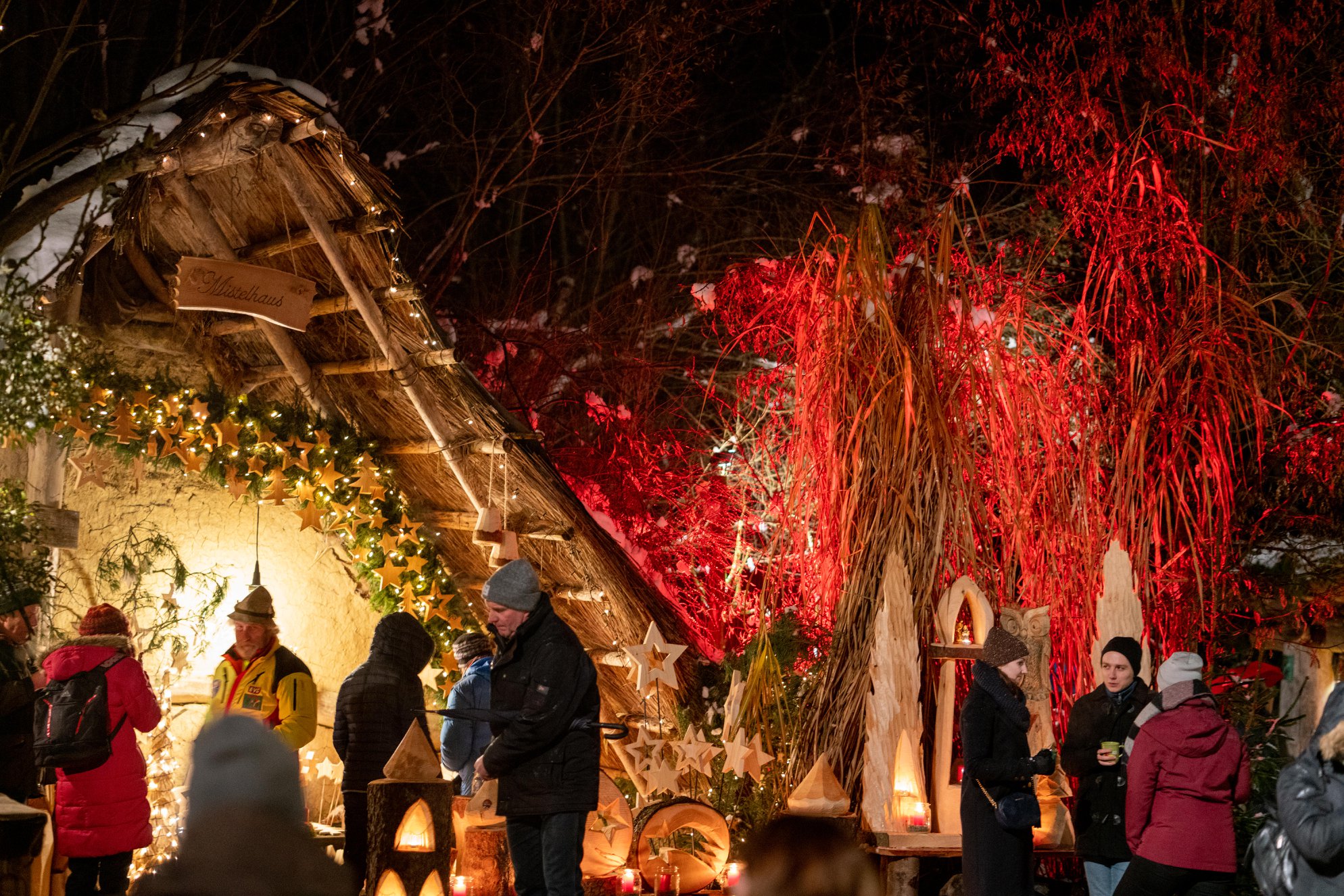 Jedes Jahr aufs neue entsteht hier ein adventliches Dorf mit urigen Holzhütten und zauberhaften Ständen. Hunderte von Kerzenlichtern erhellen die Wege. Mit seiner einzigartigen Atmosphäre verzaubert die Waldweihnacht Besucher aus aller Ferne.